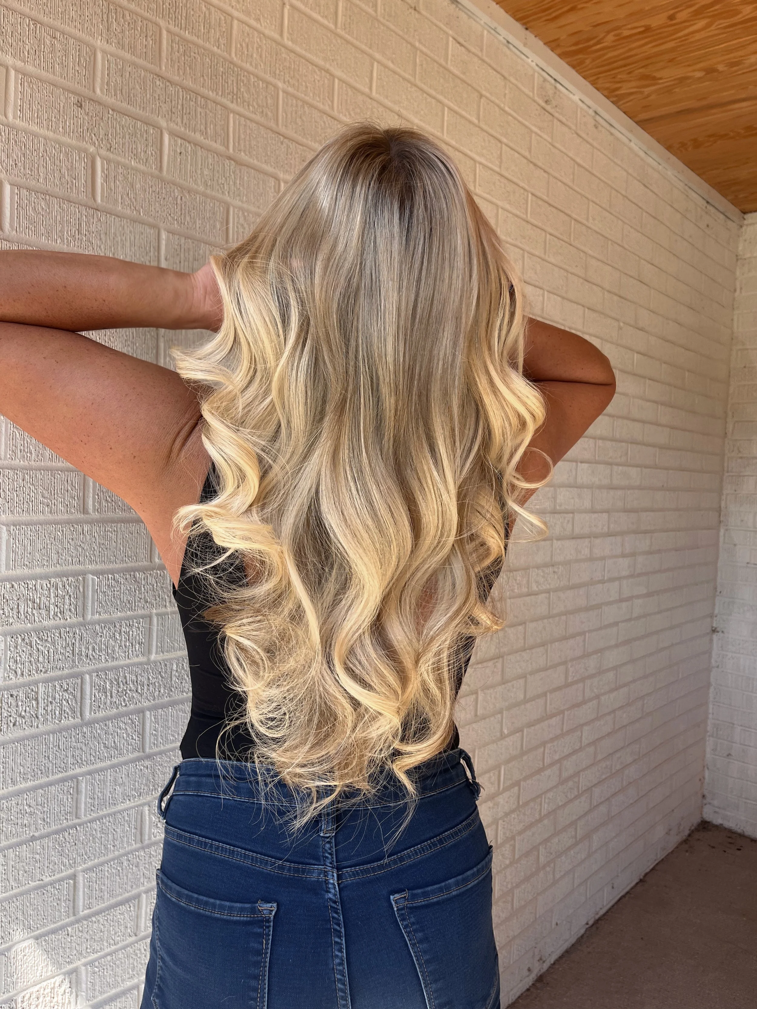 Beaded, sewn-in weft extensions that are custom colored and strategically placed. Move ups required every 6-8 weeks. Each package below includes the best hair extensions on the market, custom coloring of your natural hair and extensions, blending/cut/styling of extensions, as well as an aftercare package with everything you’ll need for your new hair.